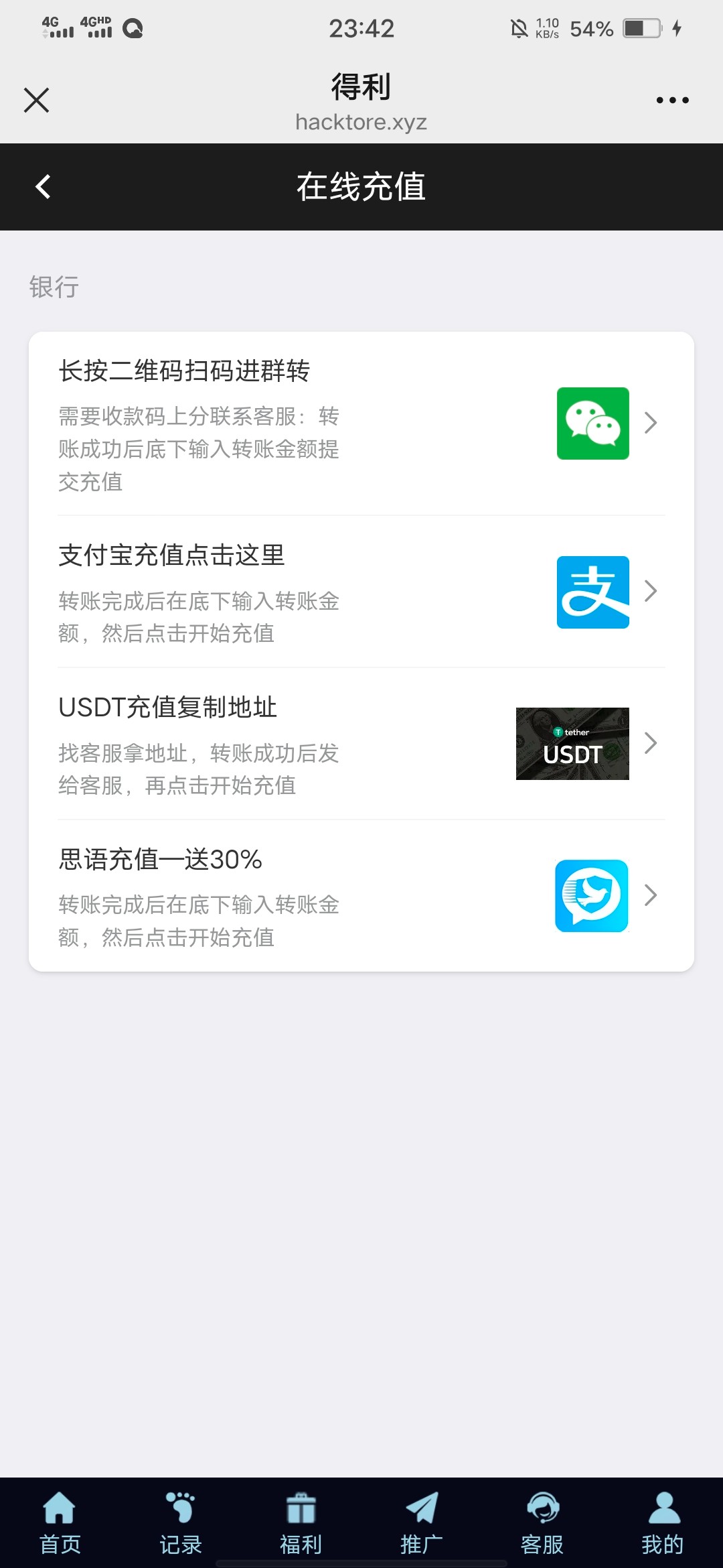 我点充值那里咋没有啊?