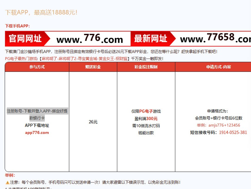 注册账号-下载并登入APP-绑定好提款银行卡 发短信 秒到26 没有联系客服领取 300-10倍水 钱能出款 网址 www.76658.com