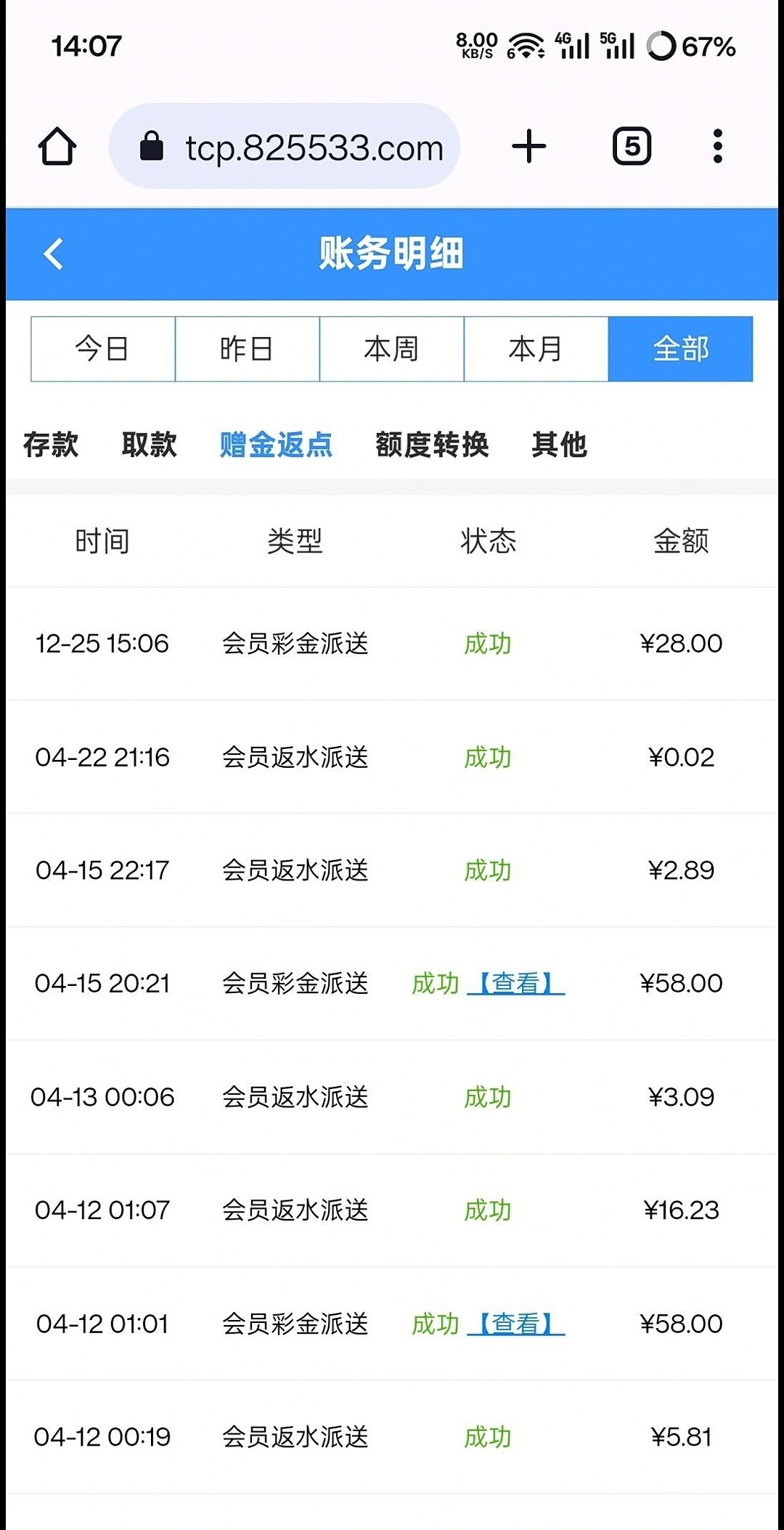 有号的上去看一下 16号的时候有一笔588 19号扣除了不知道什么原因 应该是回归召回彩金