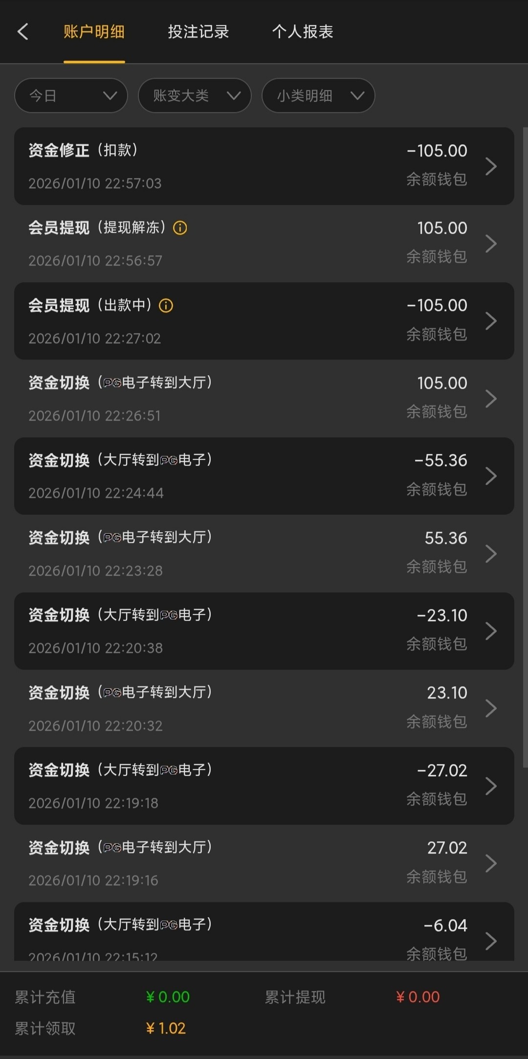 上去领1块钱返水。全程打电子,还注单异常。打上100,去提现结果给我全扣了。千万不要充值这个平台。