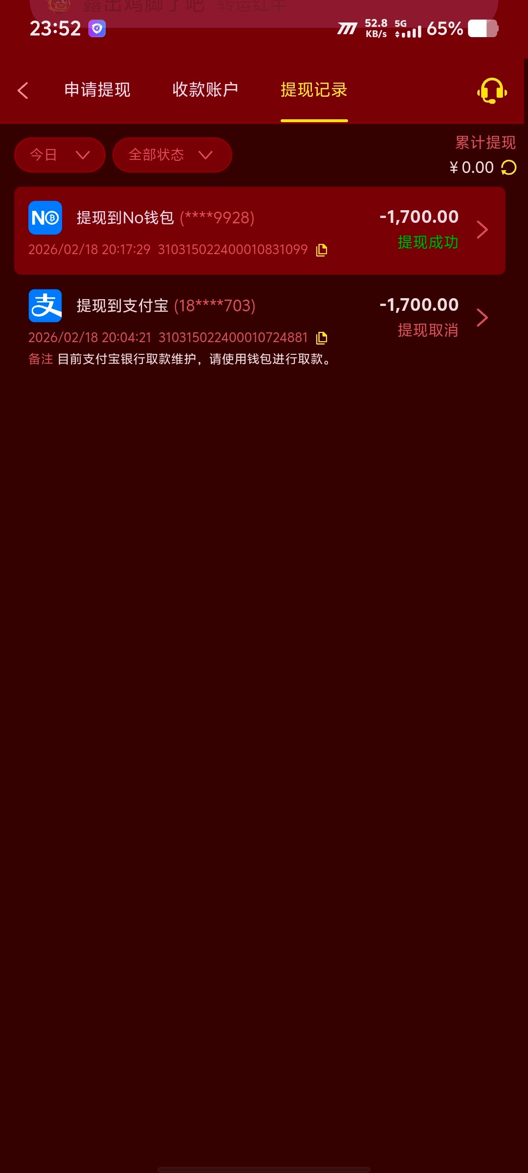 只处理到23号的返现,2月23号 结束返现活动